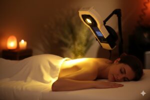 Theragem therapy or crystal light therapy uses the combined properties and qualities of light and gemstones. The light activates gemstones such as sapphire, ruby and emerald to treat specific problems such as stress, inflammation, chronic pain – including nerve pain, headaches and joint pain, as well as muscle spasms – and burnout symptoms. In addition, theragem therapy promotes and accelerates wound healing and the recovery of the body after, for example, illness or surgery. Theragem therapy also improves the skin by strengthening the collagen layer. Reduce wrinkles and you get a healthier complexion.